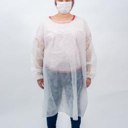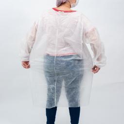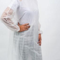 Avental confeccionado em TNT (tecido não tecido), 100% polipropileno, uso único, não estéril, protege o corpo do profissional de saúde ou do paciente contra possíveis contaminações por líquidos corpóreos ou substâncias contaminantes.