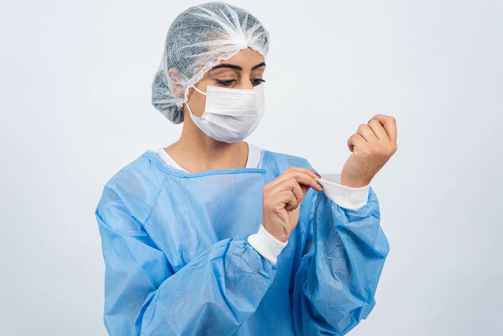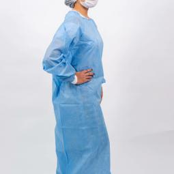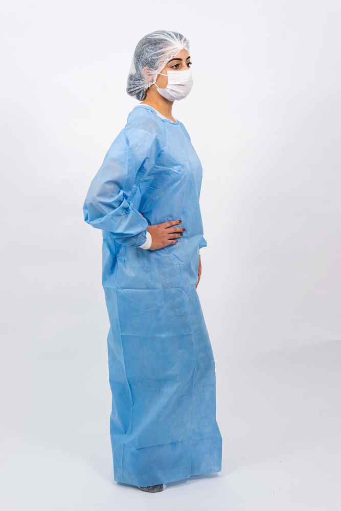Avental confeccionado em TNT (tecido não tecido), 100% polipropileno, uso único, não estéril, protege o corpo do profissional de saúde ou do paciente contra possíveis contaminações por líquidos corpóreos ou substâncias contaminantes.