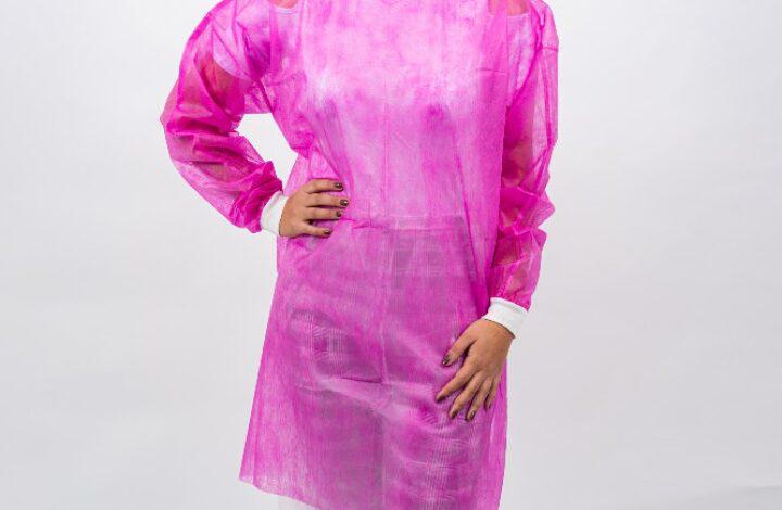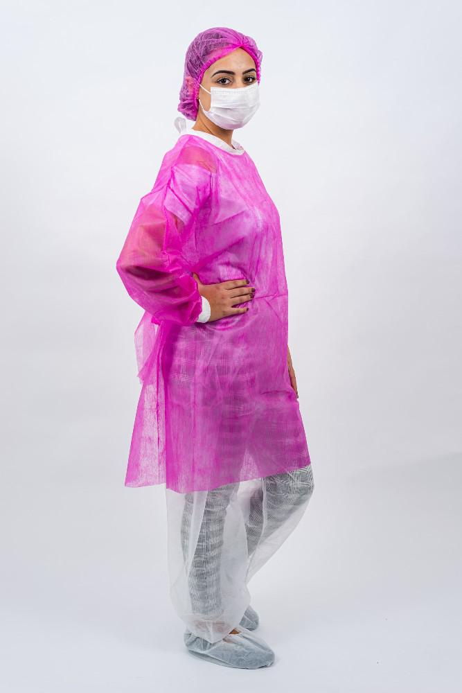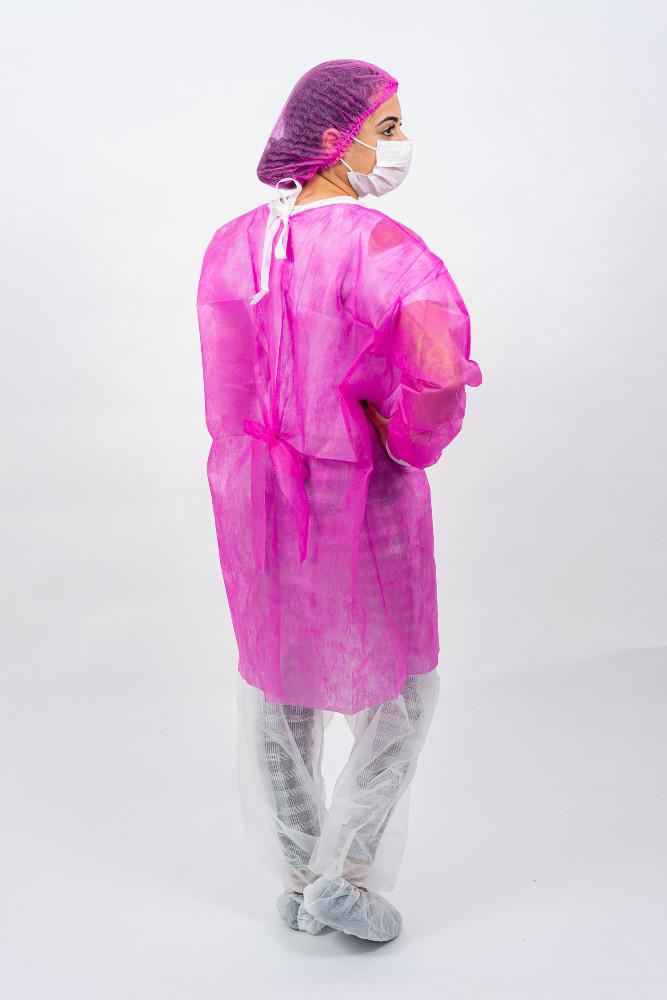 Avental confeccionado em TNT (tecido não tecido), 100% polipropileno, uso único, não estéril, protege o corpo do profissional de saúde ou do paciente contra possíveis contaminações por líquidos corpóreos ou substâncias contaminantes.